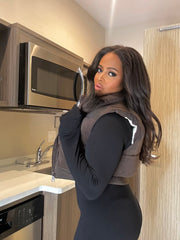 Falling for chocolate all season. You’ll love this soft and warm puff vest.